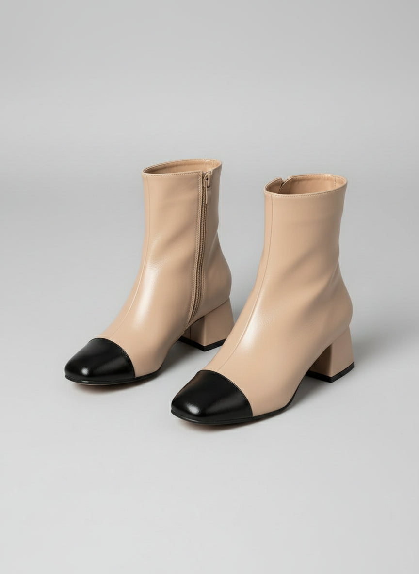 bottines à talon carré bicolores-NOIR/BEIGE