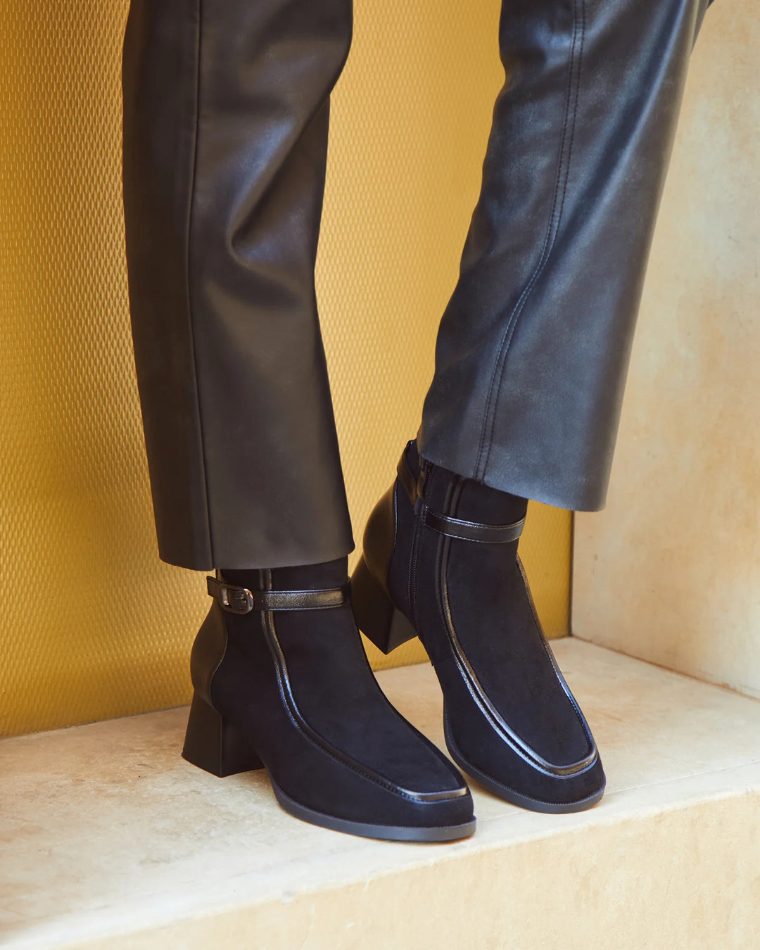 bottines à talon carré bicolores - NOIR